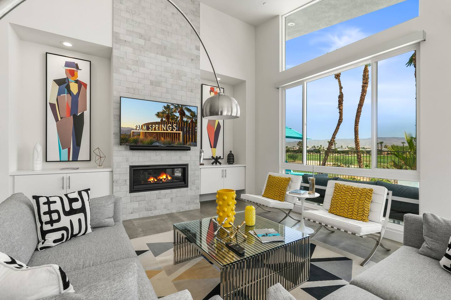 Contemporary luxury in one of Palm Springs most coveted golf communities, rated the #6 public golf course by the PGA. Celadon House is an art lover’s dream! Sumptuously decorated in “Palm Springs Glam” furnishings and modern artwork, the residence features dramatic soaring ceilings and stunning views of the golf course and mountains beyond. The perfect get-away for relaxing and entertaining around the enormous kitchen island, lounging on the patio, or sipping cocktails around the fire pit.