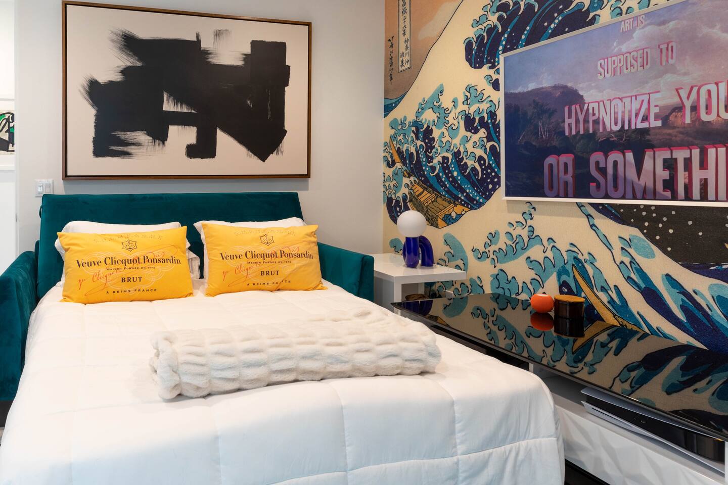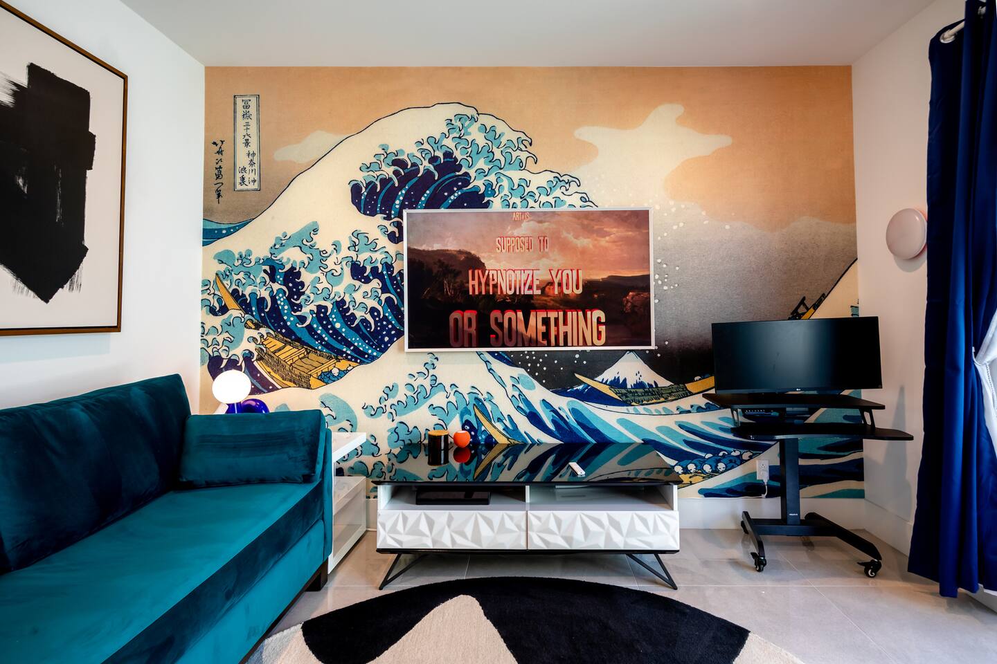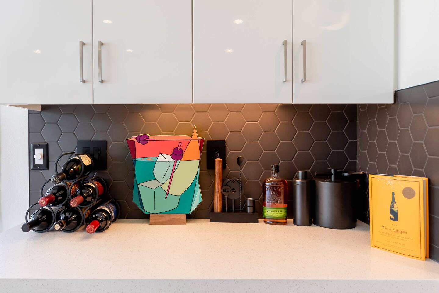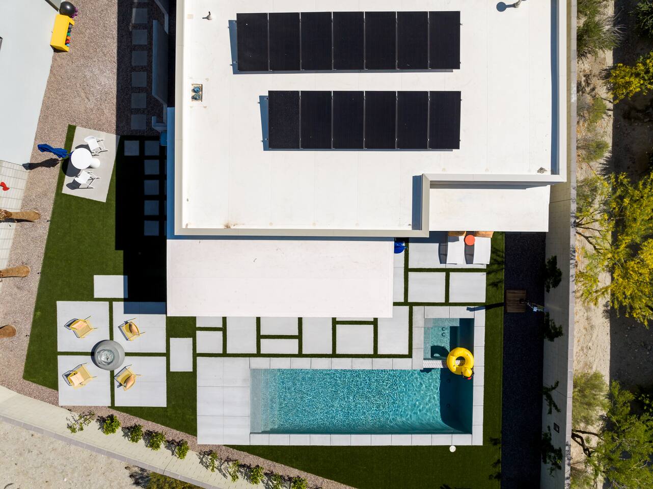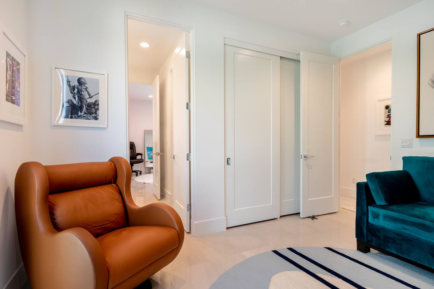 A day in the life: Imagine waking up in the desert in a white modern high ceiling gallery, full of natural light through huge sliders. Grab a cup of coffee and sit on the bouclé outdoor sofa by the 30 foot pool (one of the largest in our community!) and hot tub and stare at the best view of Mount San Jacinto in Palm Springs. Totally private. All yours. Once caffeinated, you can choose to kickstart your day with a walk through acres of olive groves, a lululemon studio yoga class in the front bedroom, a workout with provided kettlebells in the compound, a trip to the complex’s super modern gym and/or yoga studio, a lap swim, or a long soak in the hot tub with a view of the tram at the top of San Jacinto. Breakfast at the dining table provides a full indoor/outdoor lifestyle with an incredible view of the mountains while you plan your day. Work at one of two electric sit/stand desks (one with a 49 inch curved monitor like nothing you’ve ever seen), or vacation by taking a tram trip up the mountains for a hot chocolate at the peak! Go out in Palm Springs for the huge variety of fun places, great restaurants (Sherman’s Bakery! Sandfish Sushi! Clandestino!), incredible bars and social scene! Try a drag brunch at the Saguaro. Thursday nights downtown Palm Springs shuts down for a street fair full of local artists and chefs – easy parking, easy walking, easy fun. Shop for art on El Paseo for first Fridays (free champagne!). Friday and Saturday nights before heading out stop by the community complex, where a private bar serves the most delicious drinks and great company! When you’re done with any outing, return to a serene gated community to relax in front of one of four art tvs (85 inch in the living room, 75 inch in the primary suite) or a late night swim with a yard that is fully illuminated with its own palm trees and gas fire pit. Play a game of pool or ping pong on the brand new outdoor pool table! This home was completed in December 2022 and is brand new, with ten foot ceilings, floor-to-ceiling glass/tile showers that cannot be beat, separated sinks in the primary suite, blackout curtains in all bedrooms, and direct access to the hot tub and outdoors from two of the three bedrooms (including the primary, where its just a few steps!). Professionally designed for maximum comfort, functionality, and aesthetics, this incredible retreat offers the private indoor/outdoor lifestyle that Palm Springs is famous for! Three bedrooms and two and half bathrooms are in this giant 2300+ sq foot house (a rare size in Palm Springs), complete with another 4000+ sq ft of outdoor space and an attached two car garage, including Level 2 EV Charger. The appliances are all brand new and all Samsung smart devices, including a colorful refrigerator with glass doors, two ice cube sizes, a self-filling water pitcher, a beverage center, and more! The oven has an air fryer built in, perfect for leftover French fries or onion rings. The four televisions are all smart Frame TVs, which means when you turn them off they display curated art in dimmed lighting inside a picture frame so that you cannot tell they are not actually framed pieces of art on the walls (see the photos). The outdoor space includes a lap pool, hot tub, outdoor dining, a gas fire pit with four chairs around it, a soothing meditation space we call the ‘Green Room’, a workout space, a living space, and two sun worshipping loungers – all under the palm trees and artful multicolor outdoor lighting. Amenities: Accommodations for 6 King Bed in Primary with plush hotel quality mattresses 2 Queen pullout beds in guest bedrooms Luxury Brooklinen linens 2 office set ups in each guest bedroom for remote work 2 full en-suite bathrooms plus powder room TV’s in all bedrooms Heated (upon request) pool and spa (spa heating included with all reservations) Pool towels and floatation toys Gas grill on site Wall-mounted 4K TV in the living room Fully equipped kitchen Dining table with seating for 8 In-home laundry with full-size washer and dryer 2 car garage (space for one vehicle) EV Charger MIRALON Community offers: Heated Community Pool and Spa (open 6AM-10PM) Community gym Dog park