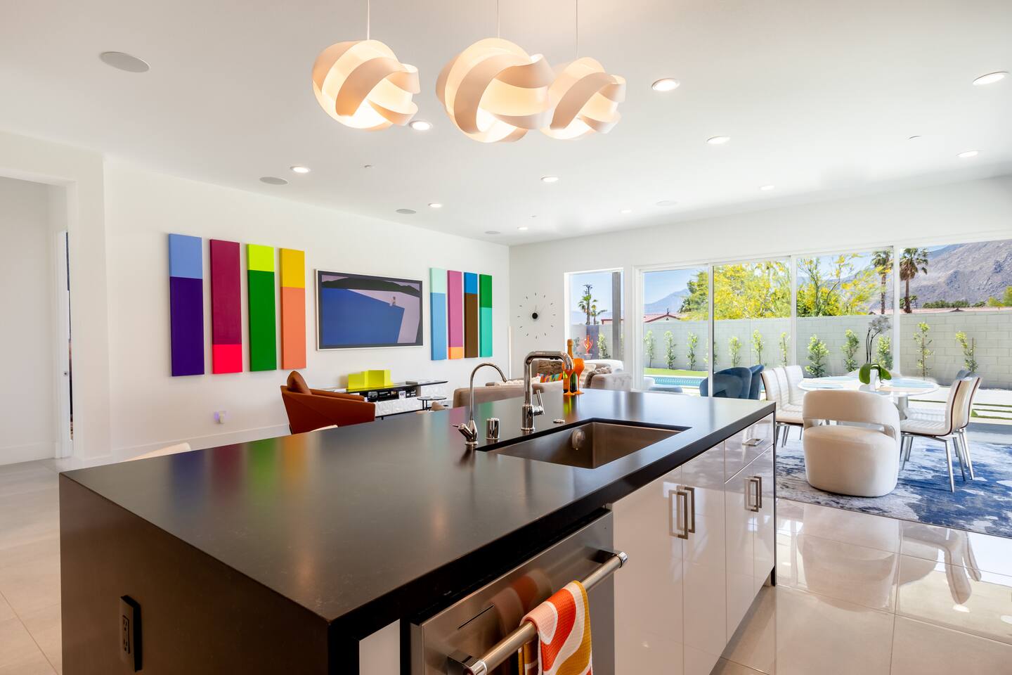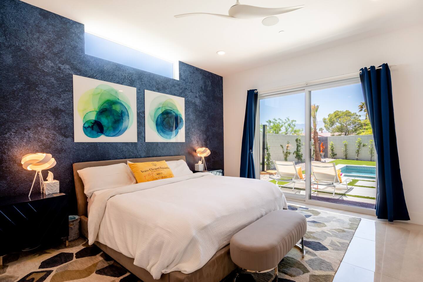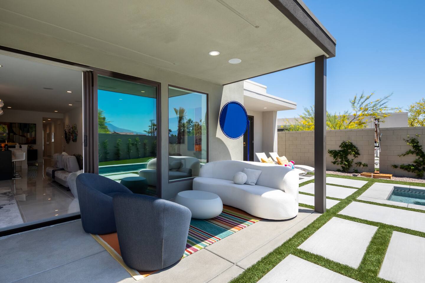 Art-filled, stylish, brand new construction home in Palm Springs at the foot of San Jacinto with a 180 degree panoramic mountain view. There is truly no better view in the Coachella Valley, architecturally framed by two sets of giant foldaway doors in the great room which open to the mountains while you hang out, dine, swim, workout, & more! With a separated primary suite & two other bedrooms/offices, this place is ready for your work from home adventure or your rest & relax vacation! PS#067826