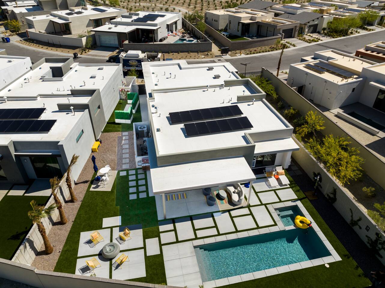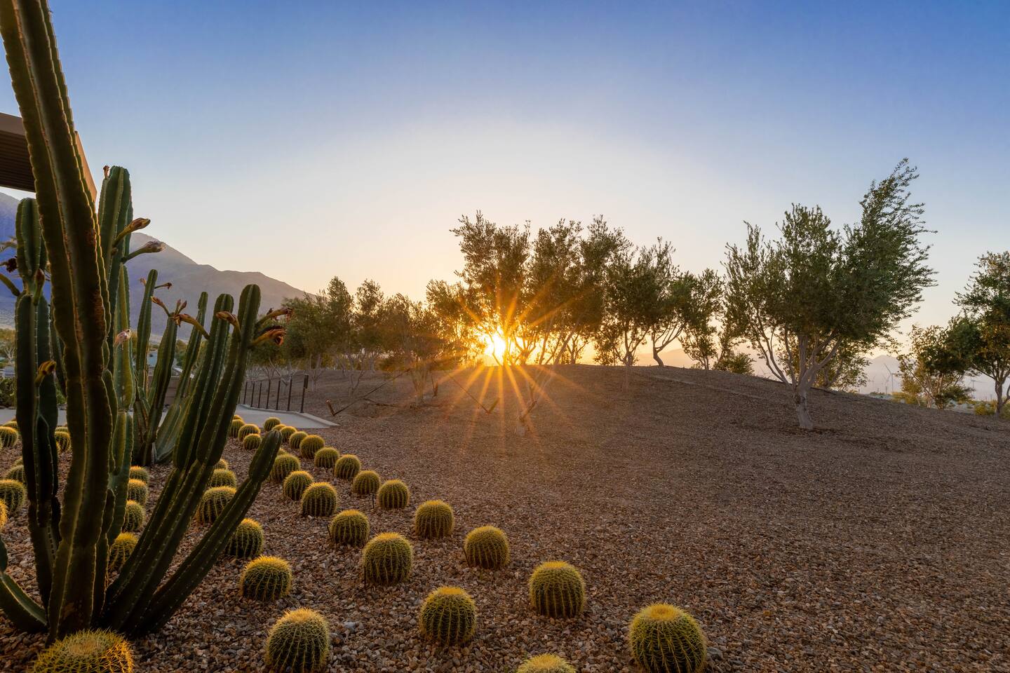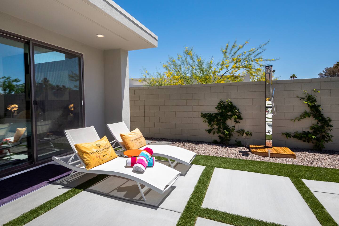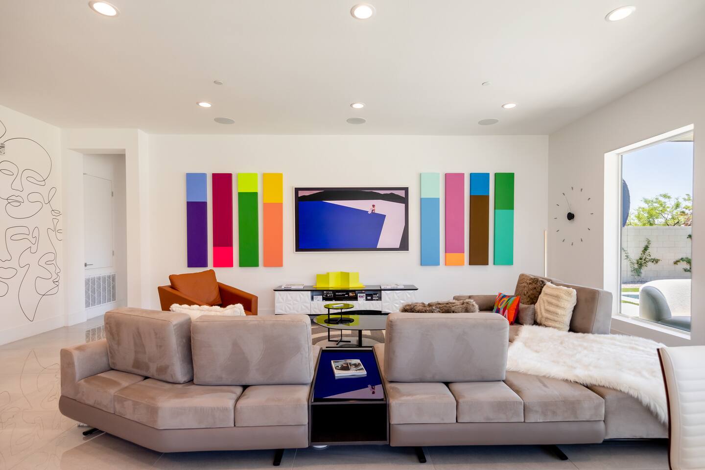 Art-filled, stylish, brand new construction home in Palm Springs at the foot of San Jacinto with a 180 degree panoramic mountain view. There is truly no better view in the Coachella Valley, architecturally framed by two sets of giant foldaway doors in the great room which open to the mountains while you hang out, dine, swim, workout, & more! With a separated primary suite & two other bedrooms/offices, this place is ready for your work from home adventure or your rest & relax vacation! PS#067826