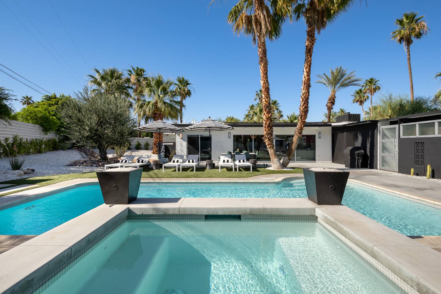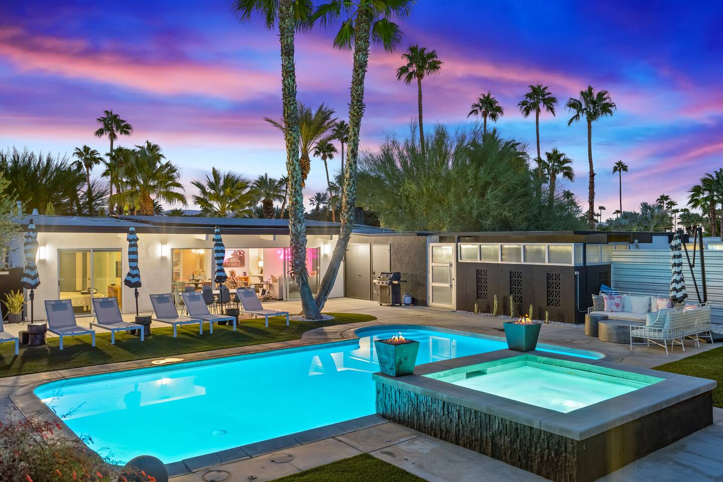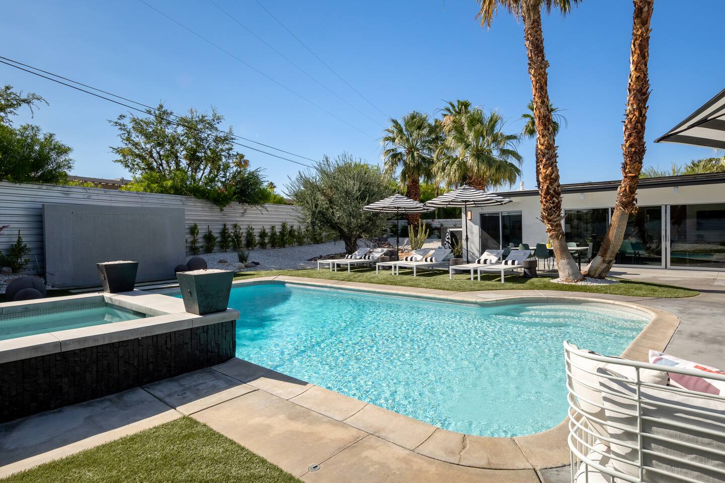 Guest booking this home must be 25 year or older as our short term rental permit requires. Parties and events are not permitted. This home allows a maximum of 6 adults/kids plus 2 additional kids 12 or under. There are strict noise and parking restrictions in Palm Springs and the booking guest will be responsible for any and all fines incurred during their visit. We reserve the right to immediately cancel any guest stay without refund if any of the short term rental rules are violated. No more than 3 cars may be parked at this home during your stay. NO amplified music is allowed outside by the pool or otherwise and all music must be contained within the home cannot be heard from outside. All activities must be taken inside by 10pm to comply with the quiet hours for short term rental compliance... and to be good neighbors. A copy of a government issued ID will be required of the booking guest along with signing an additional private rental contract acknowledging the short term rental guidelines and rules. A member of the Host with the Most team will come by after arrival for a face to face greeting to go over the city rules. This is a city requirement. Pool heating is an additional $95 per night of your visit. Spa heat is included with your reservation.
