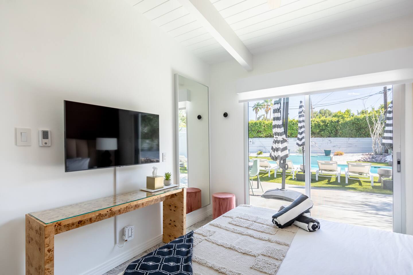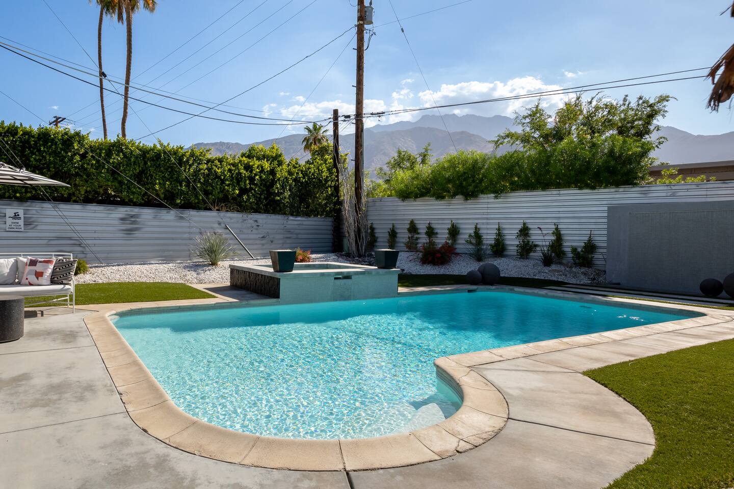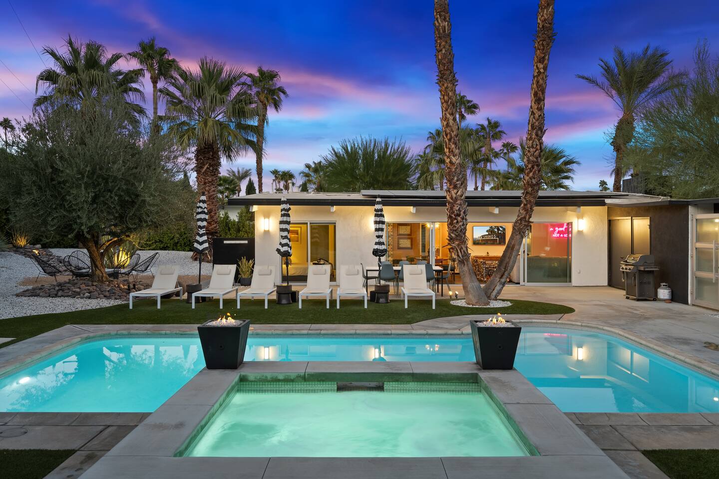 Guest booking this home must be 25 year or older as our short term rental permit requires. Parties and events are not permitted. This home allows a maximum of 6 adults/kids plus 2 additional kids 12 or under. There are strict noise and parking restrictions in Palm Springs and the booking guest will be responsible for any and all fines incurred during their visit. We reserve the right to immediately cancel any guest stay without refund if any of the short term rental rules are violated. No more than 3 cars may be parked at this home during your stay. NO amplified music is allowed outside by the pool or otherwise and all music must be contained within the home cannot be heard from outside. All activities must be taken inside by 10pm to comply with the quiet hours for short term rental compliance... and to be good neighbors. A copy of a government issued ID will be required of the booking guest along with signing an additional private rental contract acknowledging the short term rental guidelines and rules. A member of the Host with the Most team will come by after arrival for a face to face greeting to go over the city rules. This is a city requirement. Pool heating is an additional $95 per night of your visit. Spa heat is included with your reservation.