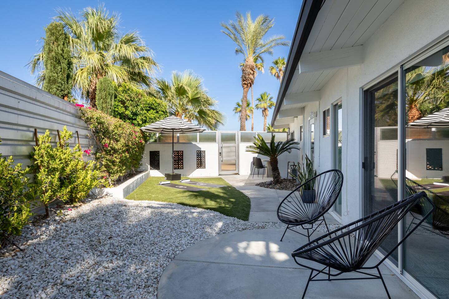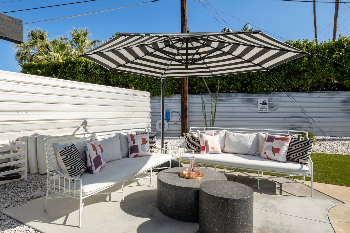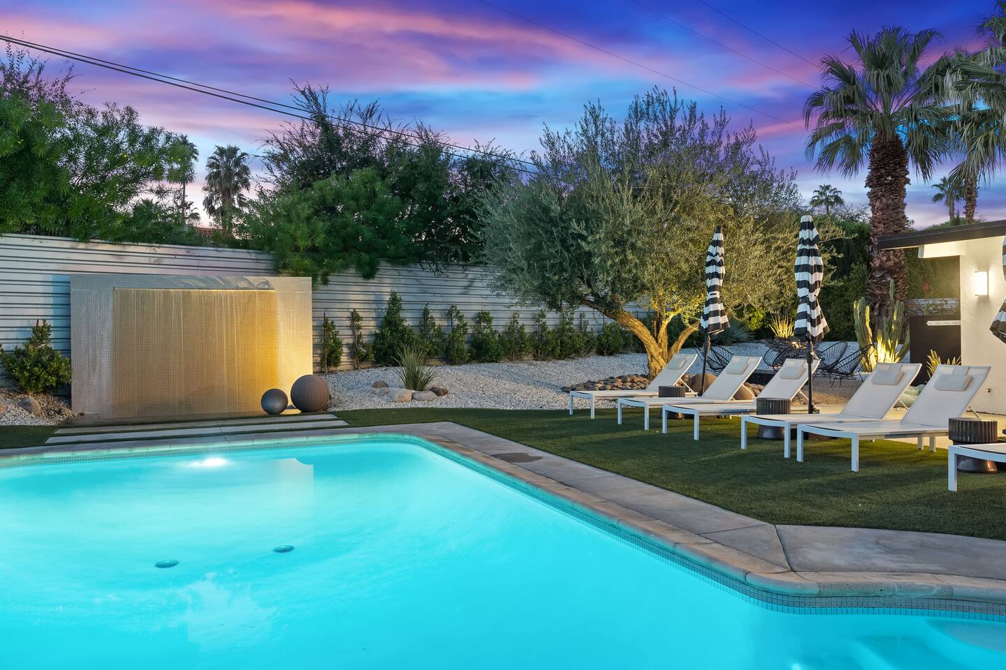 Additional rules BY AGREEING TO BOOK, YOU ARE ALSO LEGALLY AGREEING TO THE TERMS AND CONDITIONS BELOW. PLEASE READ CAREFULLY BEFORE BOOKING! •Responsible party booking this reservation must be at least 25 years old and present for the entire stay booked. •This space is set up for 6 adults/kids plus 2 children 12 and under per our Palm Springs short term rental permit. Please adjust your guest count accordingly prior to booking. A maximum of 3 cars are permitted at the property at any time. • • NO CHECK-IN ON HOLIDAYS. If your reservation start date falls on any holiday listed you will need to rebook your check-in date. Thanksgiving Day, Christmas Eve & Day, New Years Day, Easter Day, Memorial Day, 4th of July, & Labor Day. ***Heating the pool for your visit is optional, and is an additional $65 per night of your visit. Please let us know at least 48 hours in advance if you would like to choose this option! •There are noise ordinances here in PS, so NO MUSIC is allowed outside on any device at ANY TIME. In addition, there can be no outdoor noise after 10PM. There is NO MUSIC ALLOWED OUTSIDE. NO music on your phone, bluetooth device - NO MUSIC. If someone reports you to the City of Palm Springs, or the police, you will be responsible for ANY & ALL fines and you can and will be subject to removal from the property with no refund for unused time. The minimum charge is $500 if they are called out and if a complaint is made to our staff, city compliance, or the police, and/or citation is issues you will be asked to leave immediately with NO refund - so PLEASE have fun but bring it inside after 10PM and remember about the music being a NO NO at anytime outdoors - not even inside with doors open so it can be heard outside. • 12.5% tax has been charged as a “Transient Occupancy Tax” per the City of Palm Springs requirements. •Bookings over 28 nights are not subject to TOT tax. •Additional cleaning fees will be added for stays over 10 days. A cleaning rate of $425 per cleaning will be added bi-weekly per week of your stay and requested through the resolutions center. Cleanings will be arranged weekly/biweekly to accommodate guests schedules. •An outside contract is required by the city of Palm Springs will need to be read and signed prior to your visit. A link will be sent after your reservation is confirmed. The responsible guest on the reservation will also need to provide a photo of their government issued ID as required for short term rentals in the city of Palm Springs. -Surveillance or recording devices on property - Ring camera at front gate, car port, back parking, trash area, South side gate to monitor entrance and and noise monitoring device inside main living area, front pool area, and on back patio; It does NOT record actual sounds or conversations, it simply monitors the noise level (measured in decibels). We are committed to Rent Responsibly standards. This means we follow best-in-class guidelines to ensure you have a peaceful, safe and memorable stay with us. We use smart home technology to improve your experience. NoiseAware is a smart home device that measures decibel levels throughout the property and allows us to respond to noise nuisances without disrupting your stay. NoiseAware is 100% privacy compliant and is required on this property. If you have any questions, please ask. We are committed to your comfort so please let us know if we can do anything during your stay to make it more enjoyable. Failure of Tenant to adhere to City regulations will be considered a breach of this rental agreement. Tenant hereby authorizes the Manager to make charges to the Responsible Party for up to $1,500 per incident, should any complaint about the noise level inside/outside the house arise with the local police or the local city authorities. Furthermore, Tenant recognizes the right of the manager to ask Tenant and Tenant's guests to vacate the unit immediately if it becomes necessary without a refund of the rental amount. HOUSE RULES- •Check-in is after 3PM •No parties are allowed- although, having a few guests (up to 4 between the hours of 10AM and 10PM) over for dinner and drinks is encouraged. We want you to enjoy your time without a bunch of rules but please be respectful of the space and of our neighbors. •There are noise ordinances here in PS, so absolutely NO OUTDOOR MUSIC of any kind - from any device - is allowed at ANYTIME. In addition, there is no outdoor noise allowed after 10PM. If someone reports a noise complaint to our staff, the City of Palm Springs Vacation Rental Compliance, or the police, you will be responsible for ALL fines and asked to leave without refund. •This is a NON-smoking unit -- NO smoking inside but you may smoke outside provided ashtrays are used and sliding doors and windows are closed. If discovered that guests have been smoking indoors, the booking party will be responsible for a minimum $500 cleaning fee. ***TOILET*** DO NOT THROW ANYTHING BUT TOILET PAPER INTO THE TOILETS. All other garbage (i.e. Tampons, baby wipes, paper towels, etc) is to go into the waste basket. •Please DO NOT bring glasses in or around the pool or spa. There are plastic glasses provided for pool and spa use. -please bring all trash and recycling to the large bins when removing from the home. Thank you! •Please DO NOT leave any flammables such as candles, incense unattended. •Please keep the house reasonably clean and organized. •Missing and/or stained TOWELS will be charged to the guest at a rate of $25 per item. Other linens will be charged accordingly for replacement. Brooklinen sheets will be charged at $195 per set for any stains or damage. ANY BROKEN OR MISSING ITEMS will be charged to the guest accordingly. •Please keep front door locked and ALWAYS turn A/C to 85 and leave on auto and cool, and lights off when you finish your stay. •We do allow pre-approved well behaved pets with an additional pet fee. We DO allow service dogs. They mu
