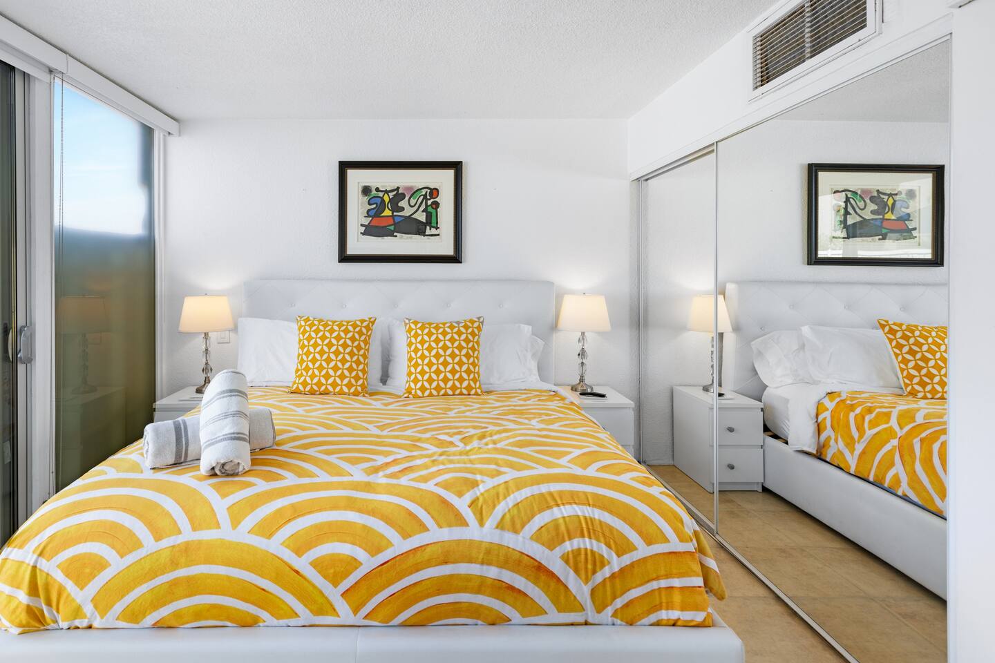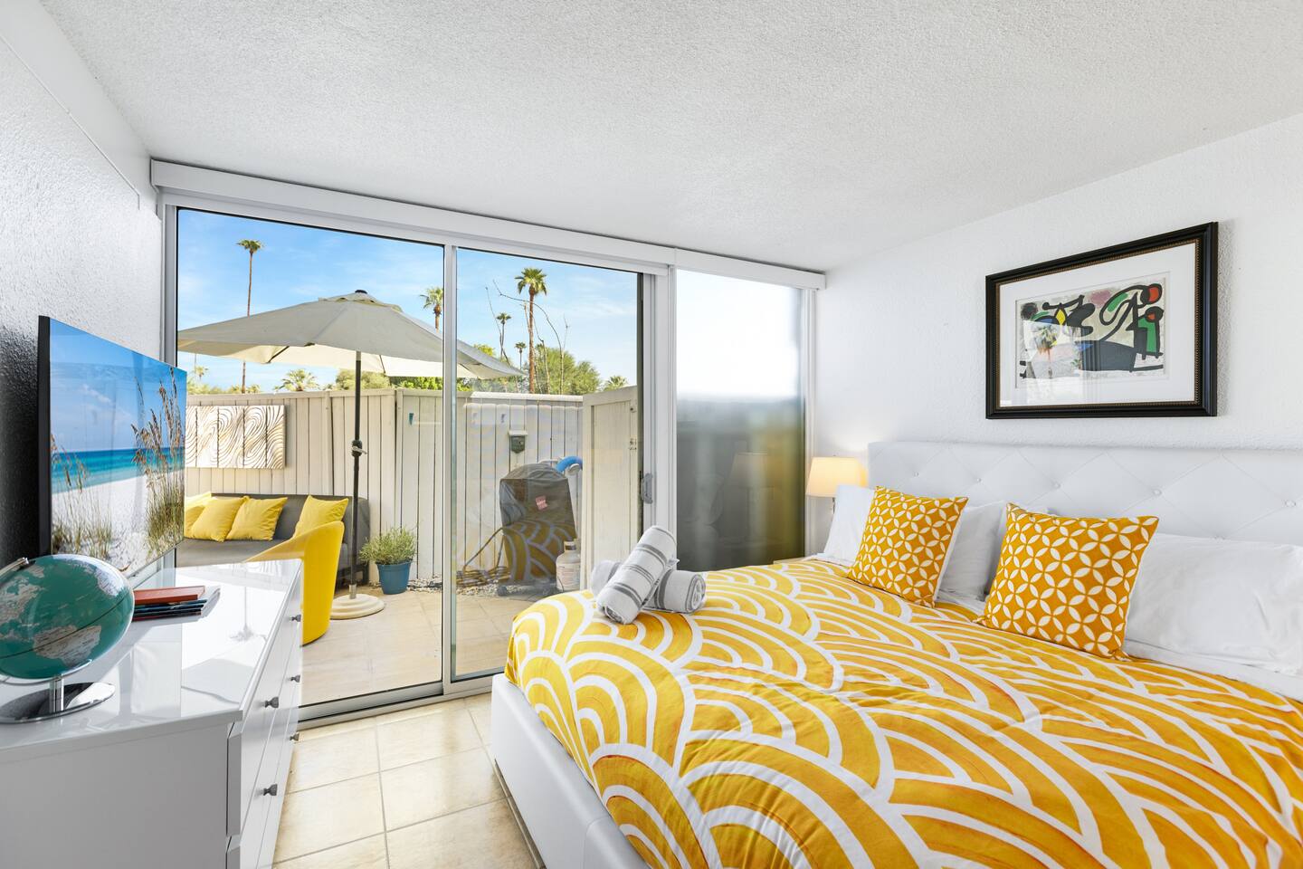 We have furnished this unit as we would want a hotel suite, with the best brand new furnishings and hotel quality amenities. The Bedroom boasts a King bed and the living room has a Queen pull out couch. Brooklinen linens provided along with pool towels and everything else you might need for the perfect Palm Springs vacation. Amenities: Accommodations for 2 adults (plus 2 kids 12 or under) Primary Bedroom with plush King hotel quality mattress 1 En-suite bathroom Brooklinen linens Easy access to Ocotillo Lodge HEATED pool 2 spas Pool towels Outdoor private patio Sun lounges & Dining tables around the Ocotillo Lodge pool Ample shade umbrellas around pool Outdoor gas grill Fully equipped kitchen Dining table with seating for 4 Onsite gym with 24 hour access