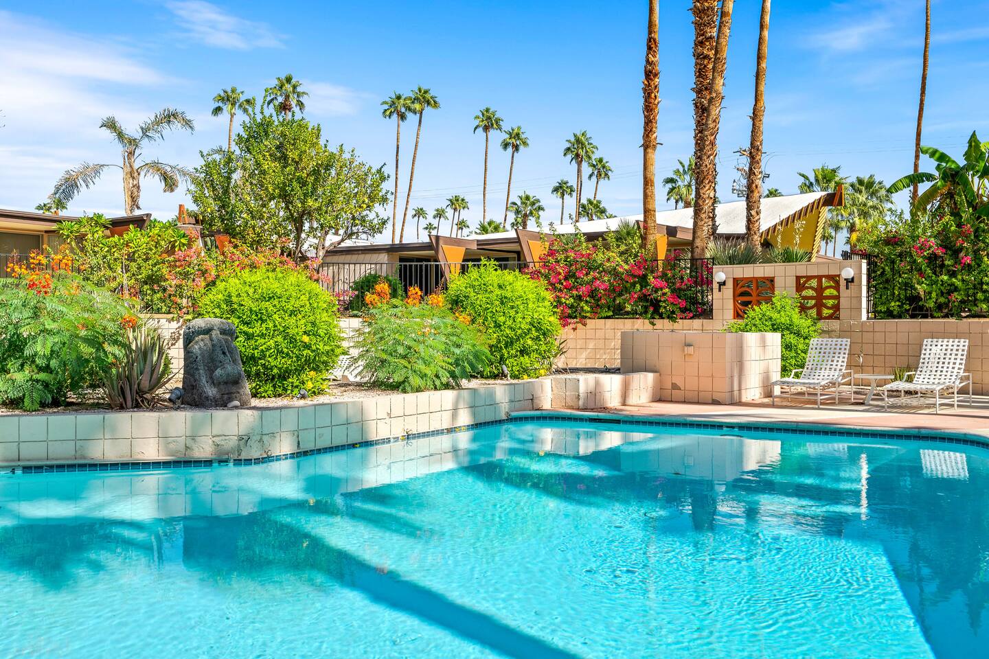 As the name implies, Hawaii was the theme when Donald Wexler and Richard Harrison in 1960 designed this beautiful, immersive complex, so you’ll be excused for thinking you’re 2,500 miles further west! Newly renovated with impeccable style yet keeping that mid-century modern feel that Palm Springs is famous for, Tropical Modernism will be the home away from home you won’t want to leave! 28+ nights