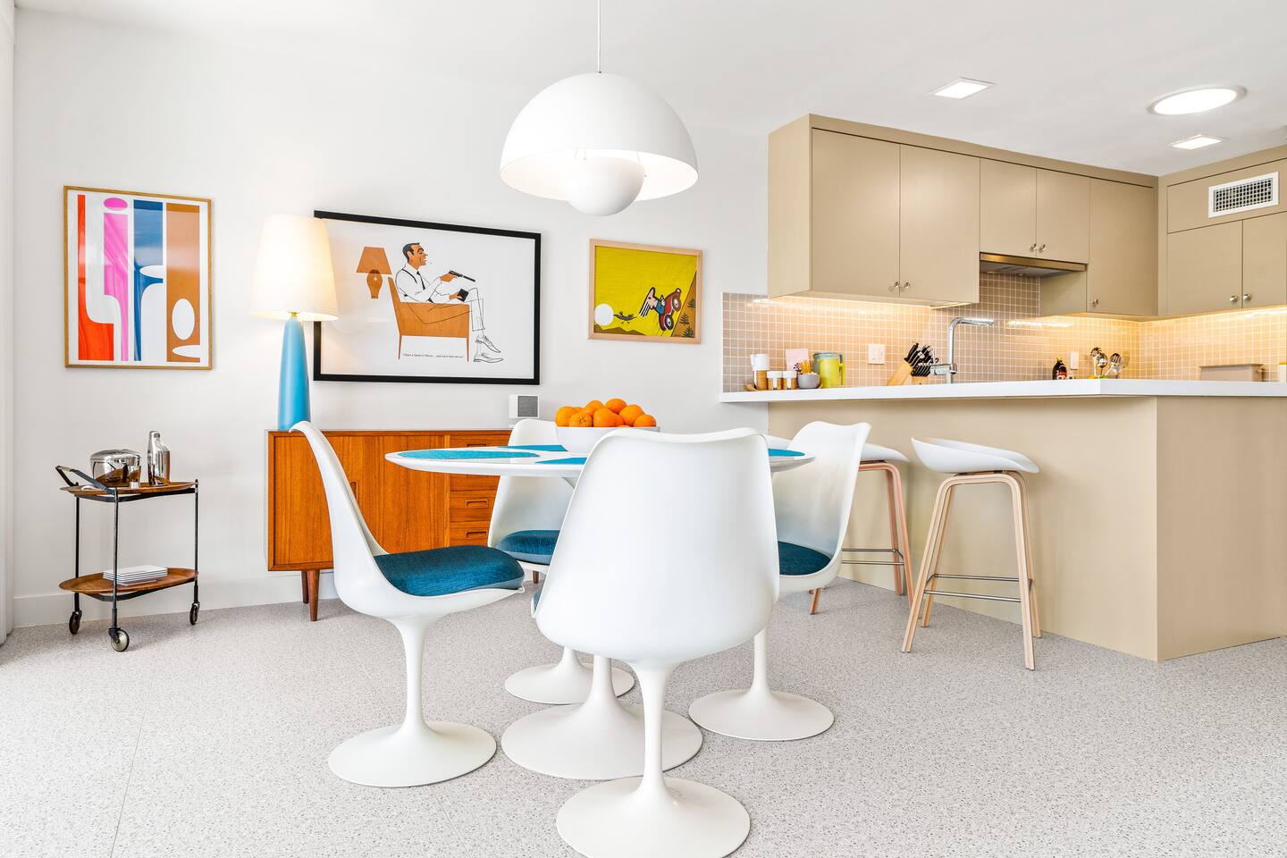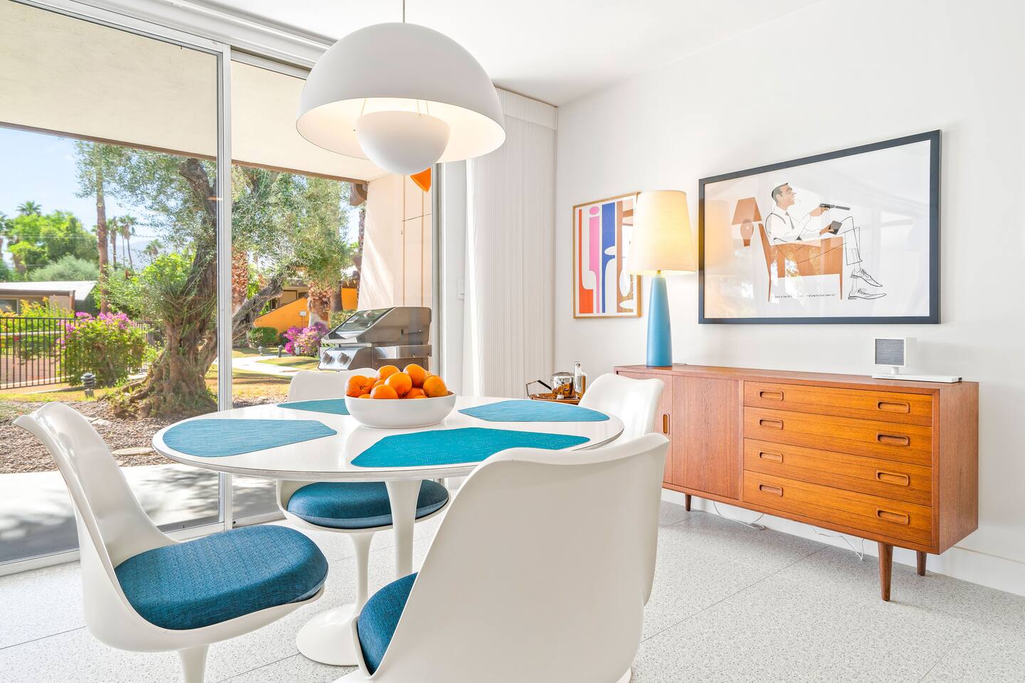 Tropical Modermism is located at the south end of Palm Springs, making it just minutes walk to respected venues such as Mr Lyons, The Reef, Elmer’s, Del Rey, King’s Highway, Bar Cecil, El Mirasol and more. It is just a short drive to a selection of supermarkets or to downtown Palm Springs with its extensive selection of restaurants, coffee houses, boutiques, and other vintage shops.